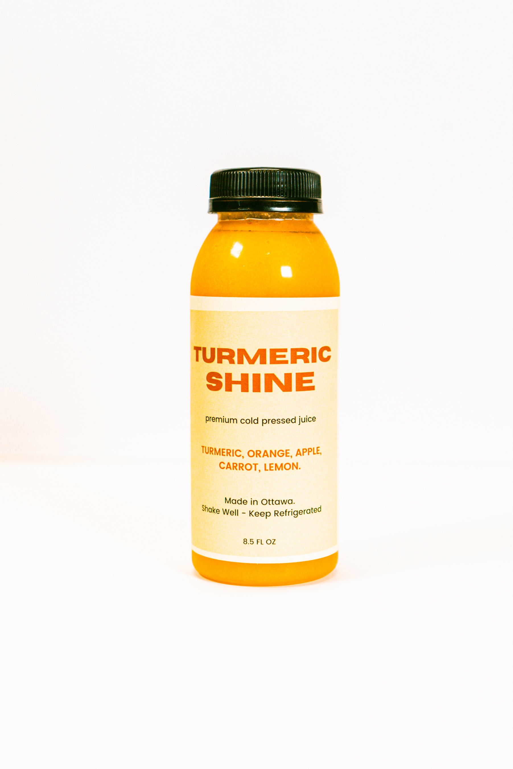 Contains; Navel Orange, Turmeric Root, Fuji Apple, Lemon, Carrot*. (220 Calories*Per Serving)
